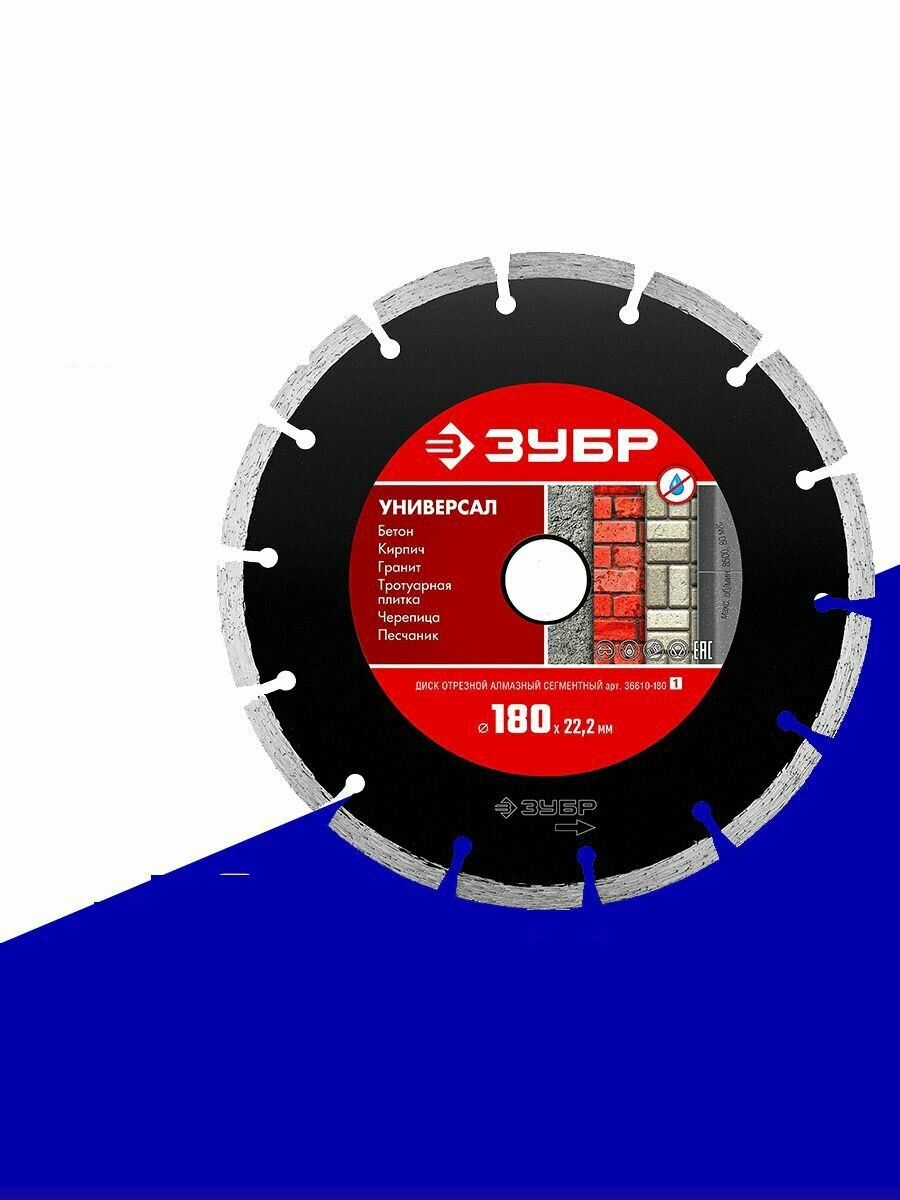 ЗУБР универсал 180 мм, диск алмазный отрезной сегментный, бетон, кирпич, гранит, камень, плитка, черепица (180х22.2 мм, 7х2.2 мм), (36610-180_z01)
