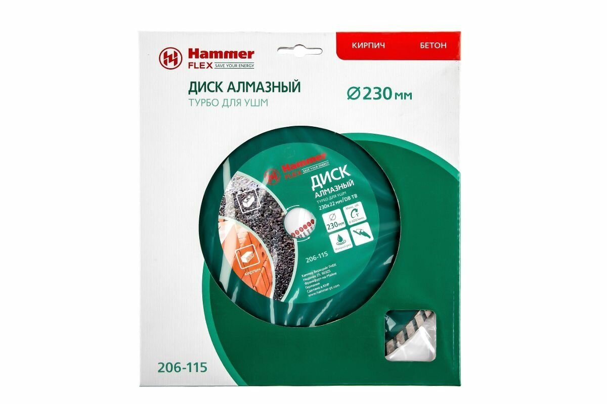 Диск алмазный отрезной Hammer Flex 206-115 DB TB, 230 мм, 1 шт.