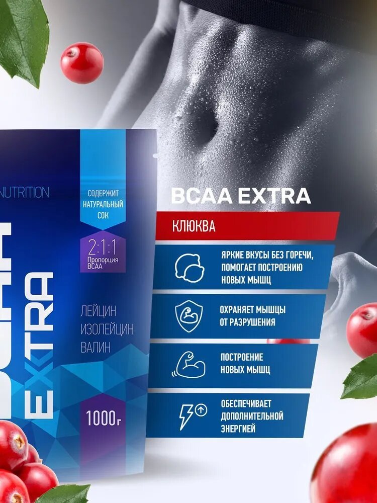 Аминокислоты RLine BCAA Extra - 1000 g, пакет, Клюква