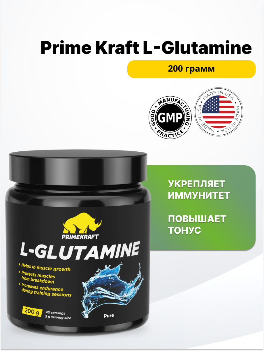 Аминокислота Prime Kraft L-Glutamine, без вкуса, 200 гр.