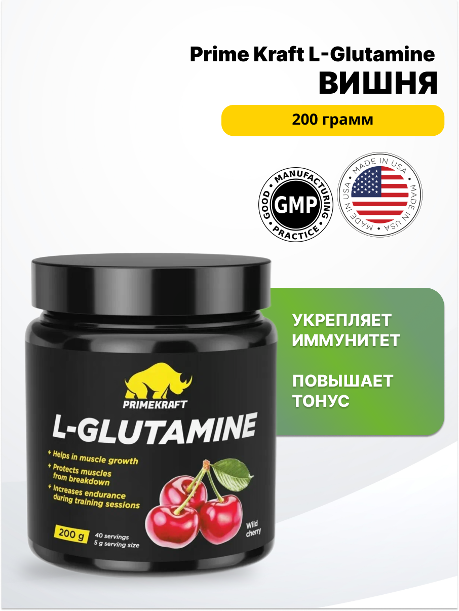Аминокислота Prime Kraft L-Glutamine, дикая вишня, 200 гр