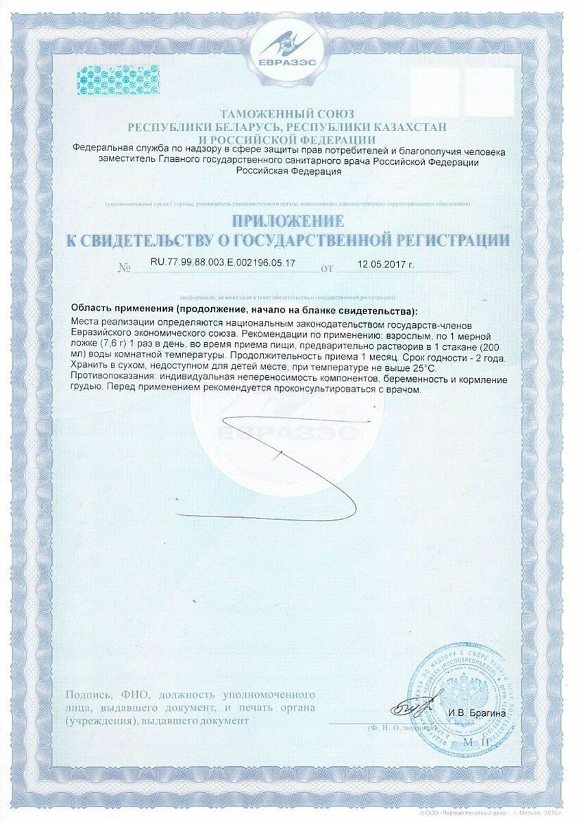 | Плюсы: | Приятный на вкус, хорошо растворяется в воде, хорошо усваивается) |