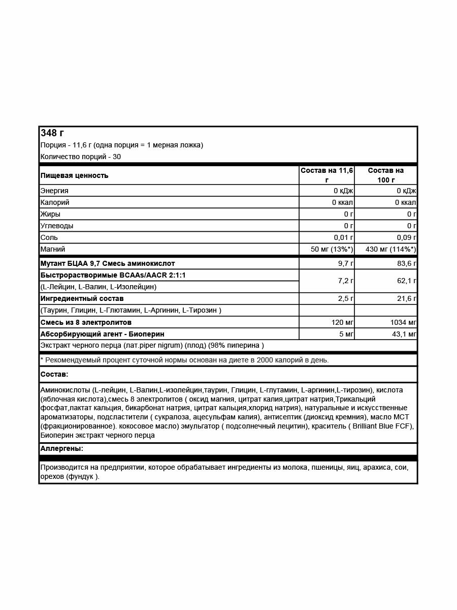 BCAA 2:1:1 Mutant BCAA 9.7 2:1:1 348 г, Голубая малина