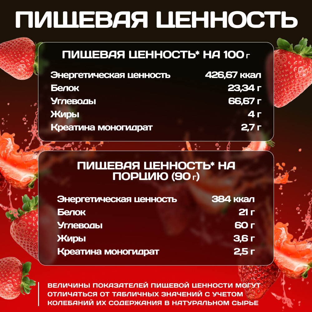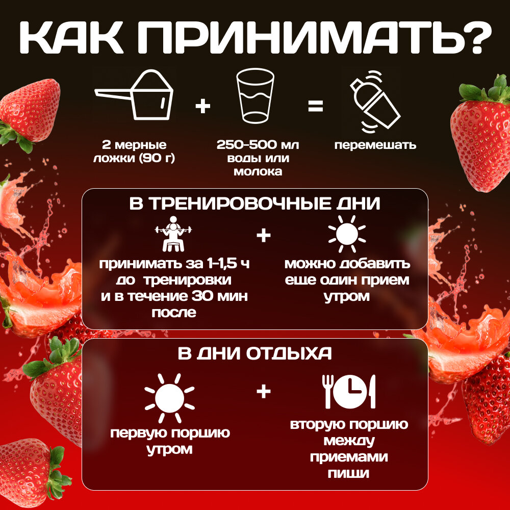 | Плюсы: | Большой объем, приятный на вкус, плюс креатин |