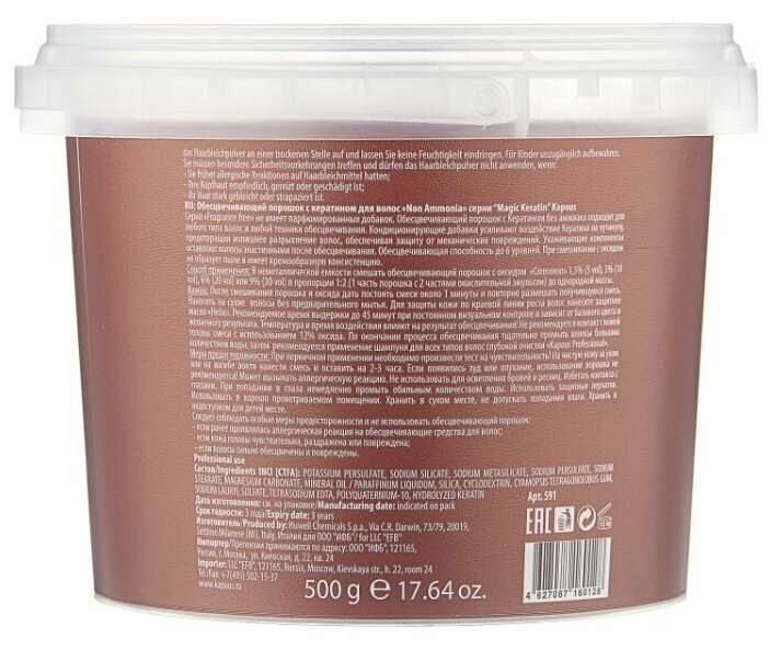 Kapous Обесцвечивающая пудра с кератином без аммиака в микрогранулах Fragrance free Magic Keratin Non Ammonia, 500 мл, 500 г