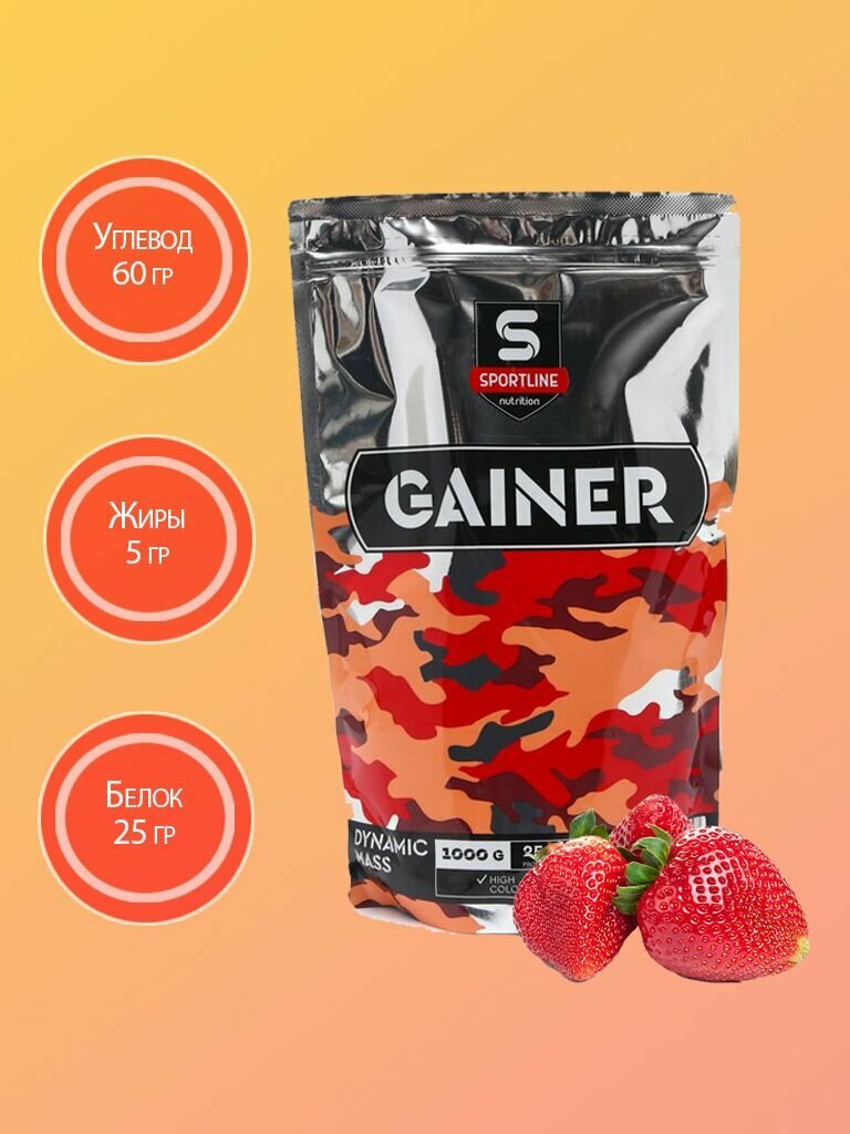 Гейнер Sportline Nutrition Dynamic Mass (1000 г), клубника