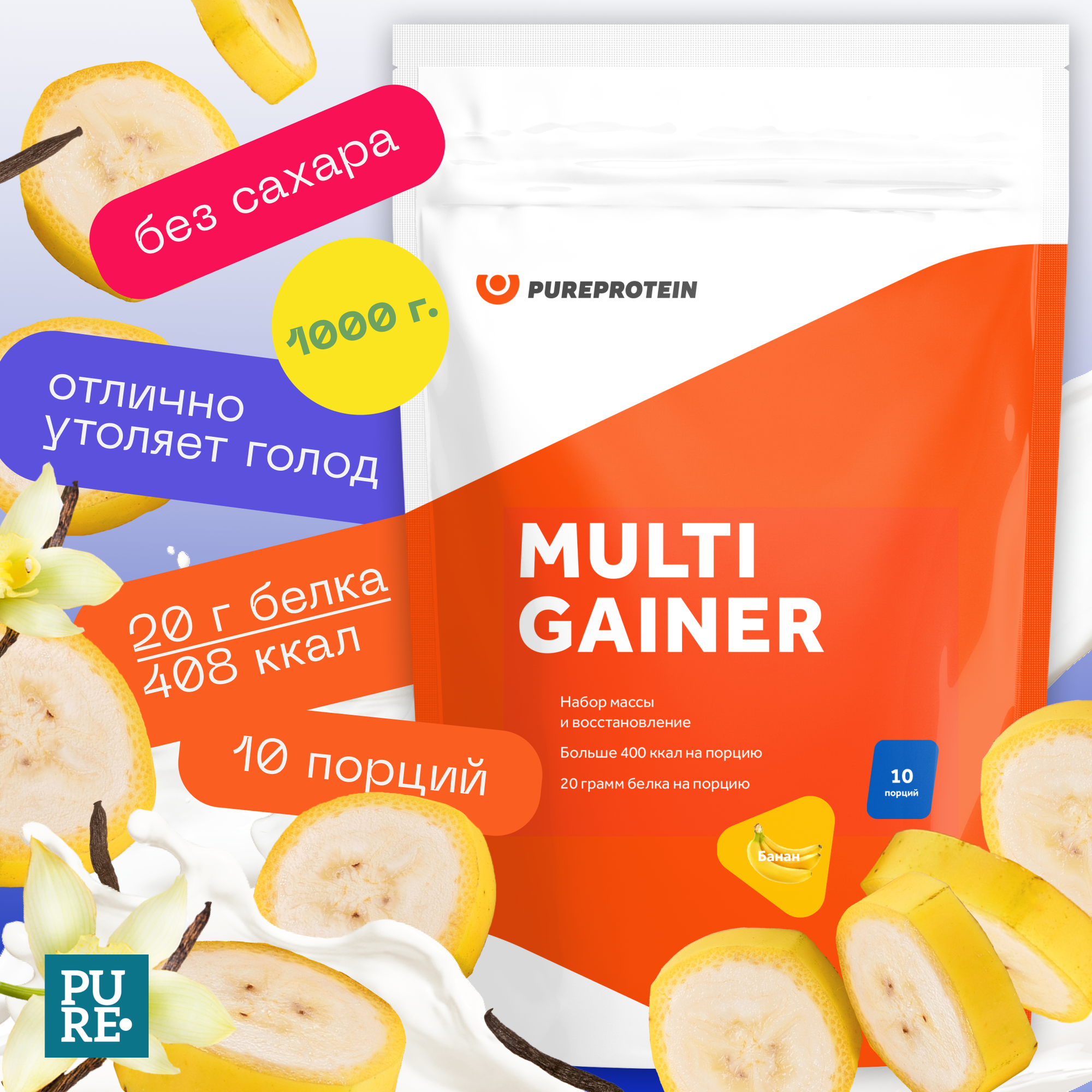 Мультикомпонентный гейнер Multi Gainer от PureProtein 1000 г : Банан