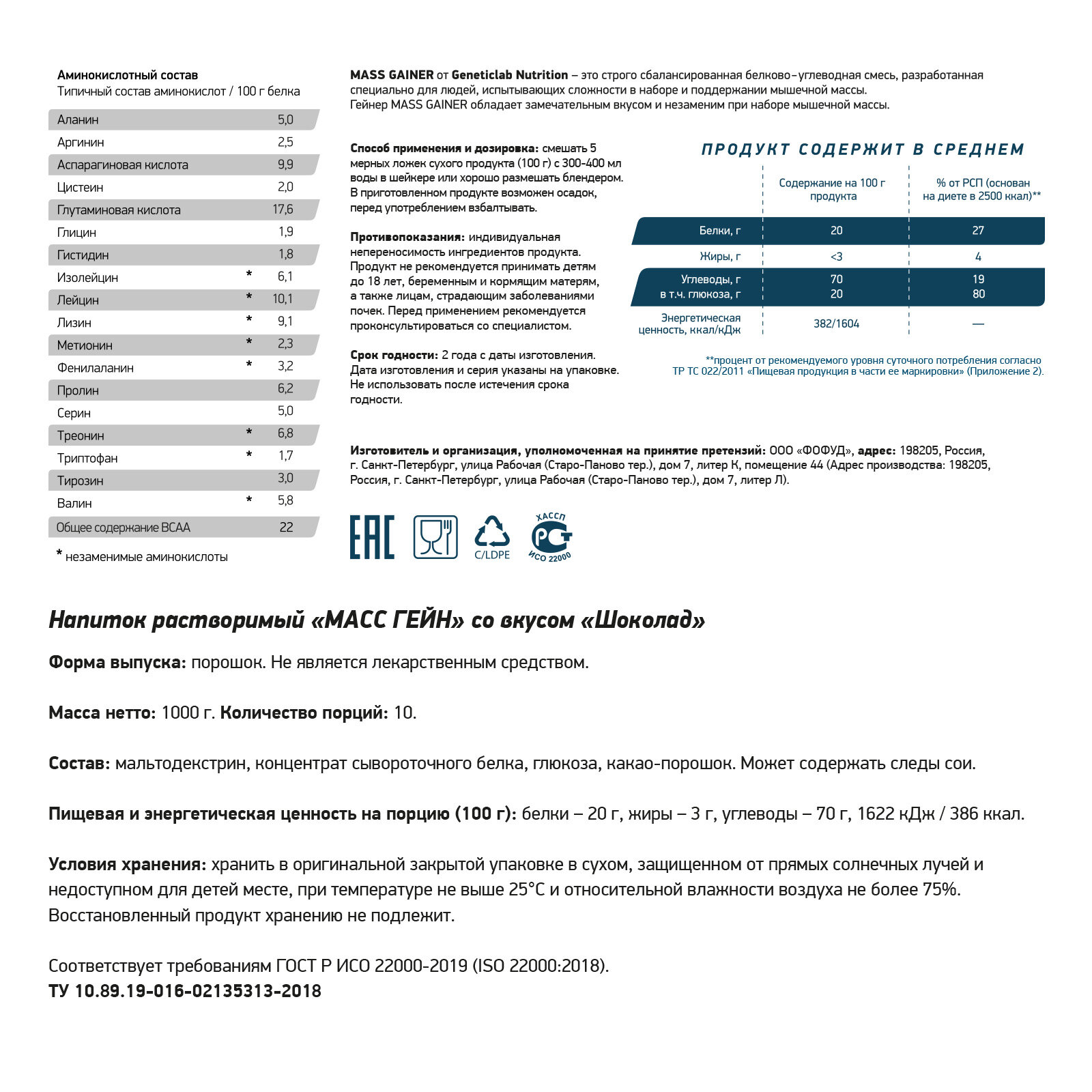 СохранитьGeneticLab Mass Gainer 1000 грамм Шоколад интересное: