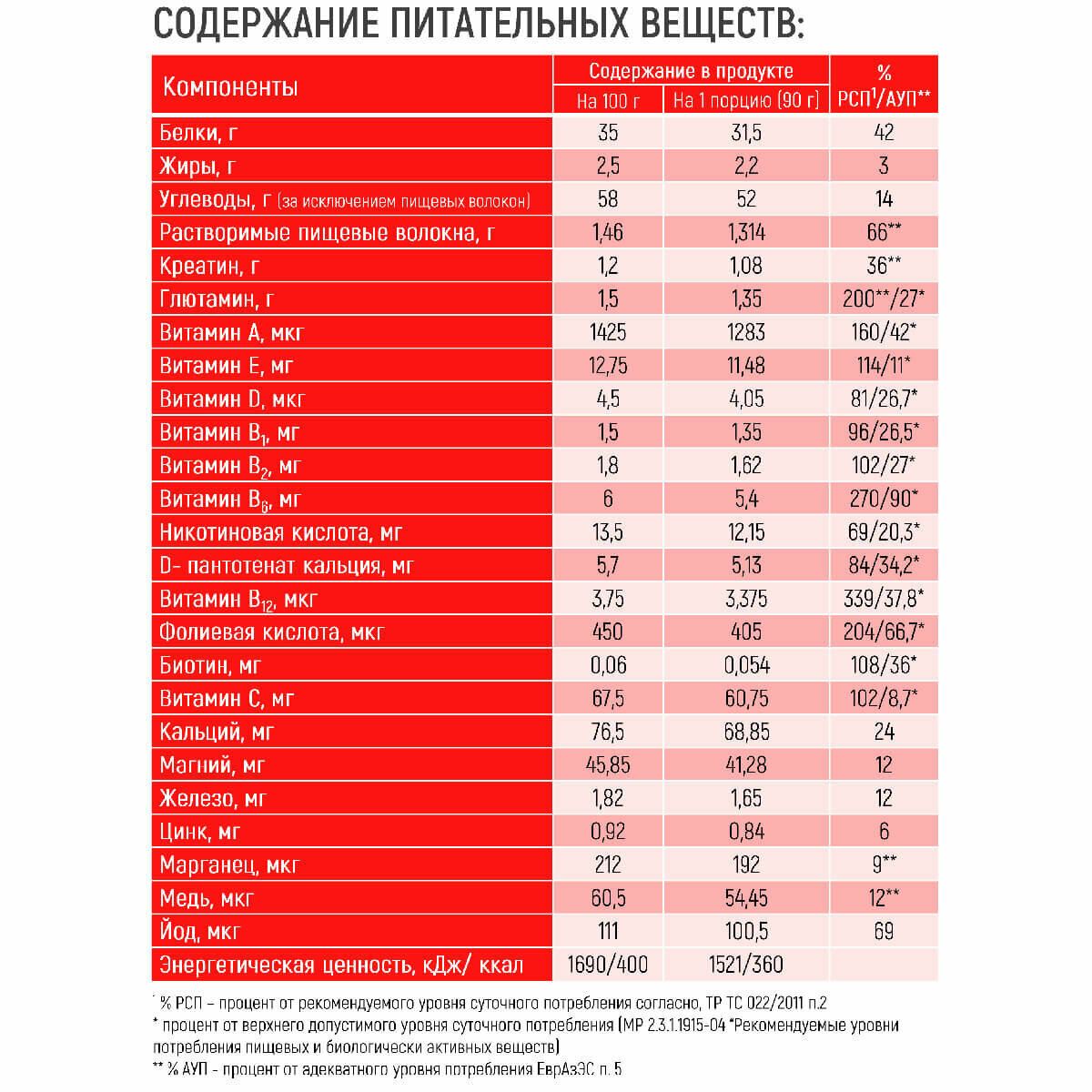 | Плюсы: | Отношение углеводов и белков 2:1 отличное для использования в качестве восстанавливающего средства. |