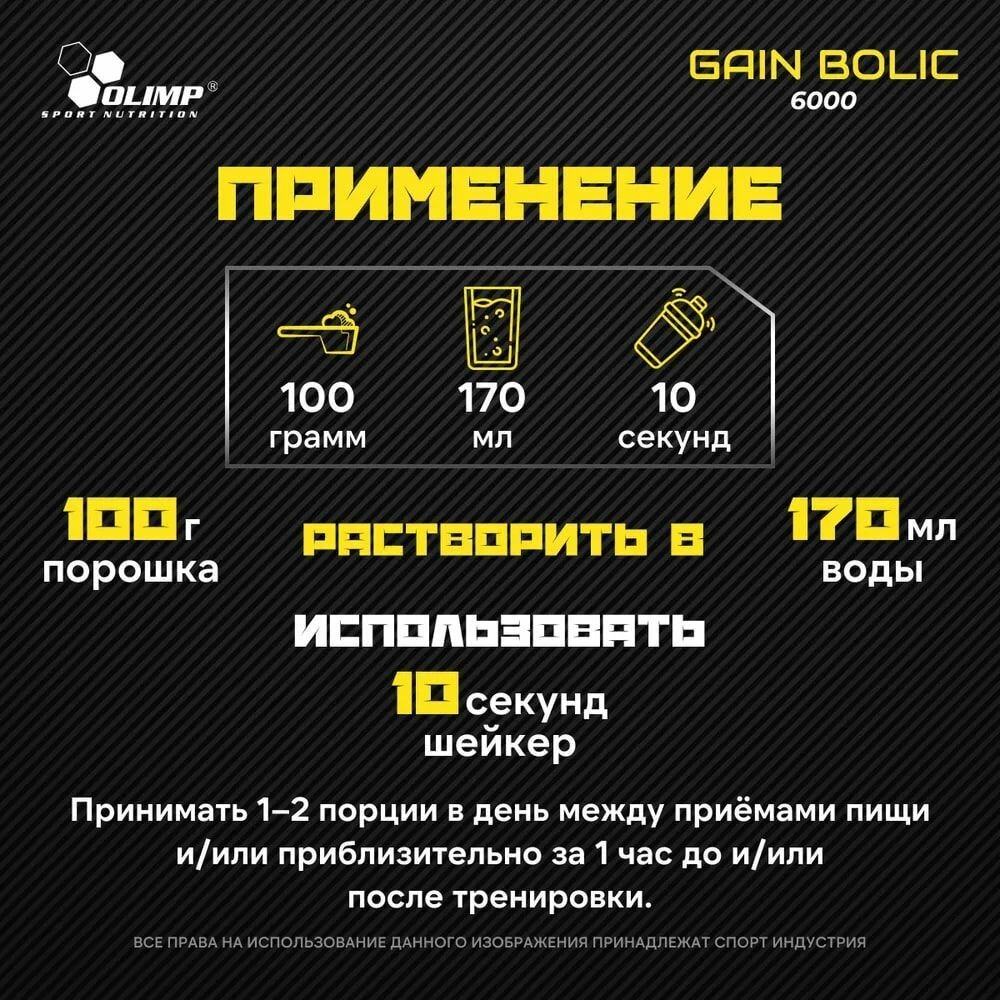 Гейнер Gain Bolic 6000, 1кг (ванильный) / Olimp Sport Nutrition / Спортивное питание для набора мышечной массы