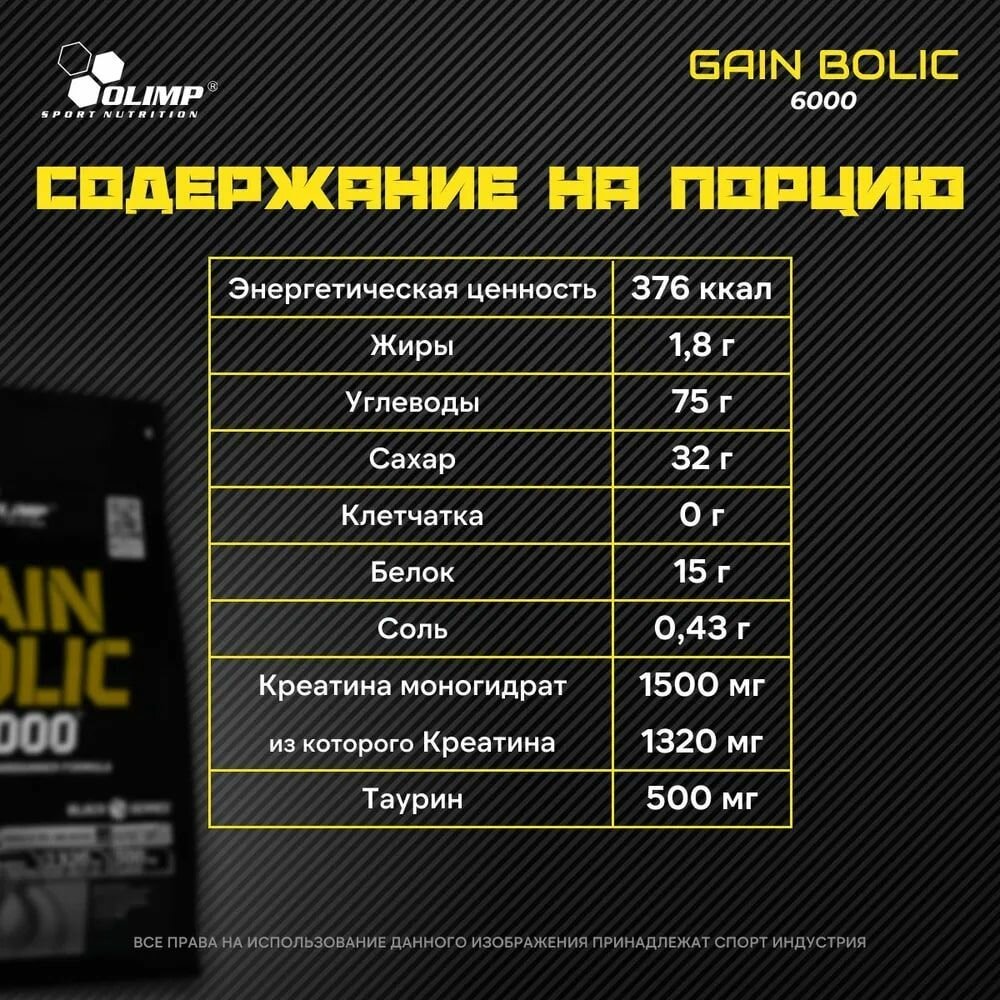Гейнер Gain Bolic 6000, 1кг (ванильный) / Olimp Sport Nutrition / Спортивное питание для набора мышечной массы