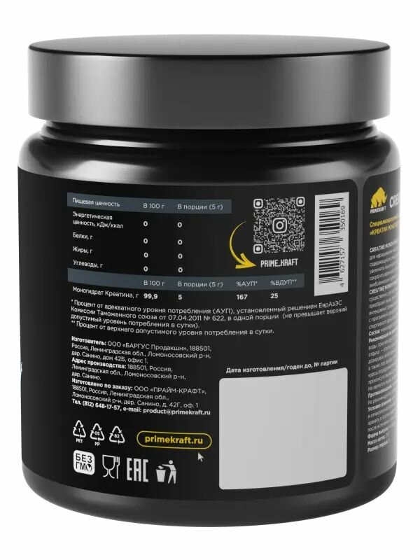 Prime Kraft 100% Pure Creatine Monohydrate (500г)