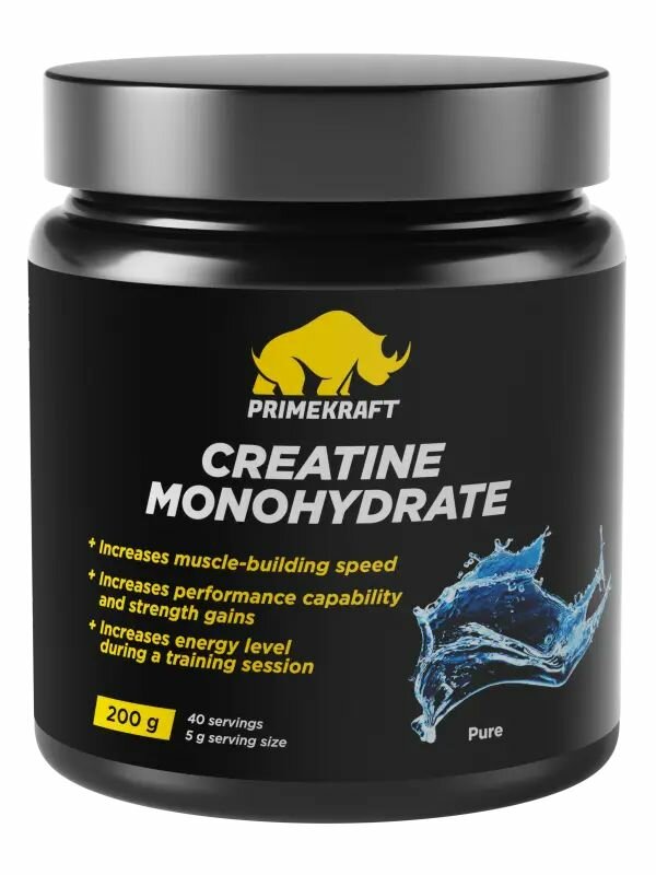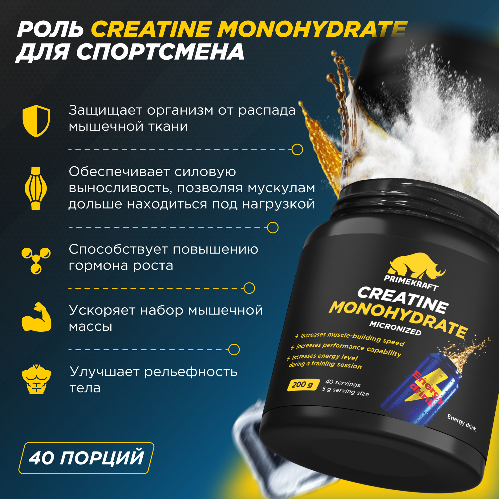 Креатин Моногидрат Микронизированный PRIMEKRAFT Creatine Monohydrate Micronized, Энергетик, банка 200 гр / 40 порций