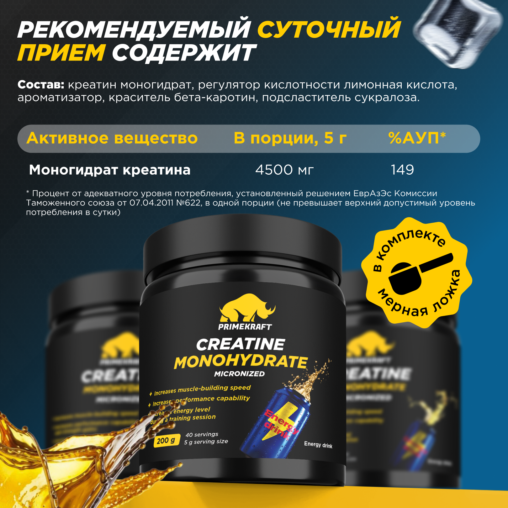 Купить Креатин Prime-Kraft Creatine Monohydrate 100% 200 г, вкус: энергетик