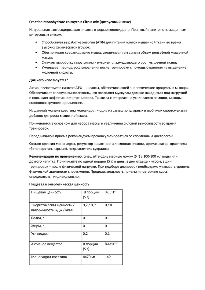 | Плюсы: | Обычный креатин моногидрат по приемлемой цене |