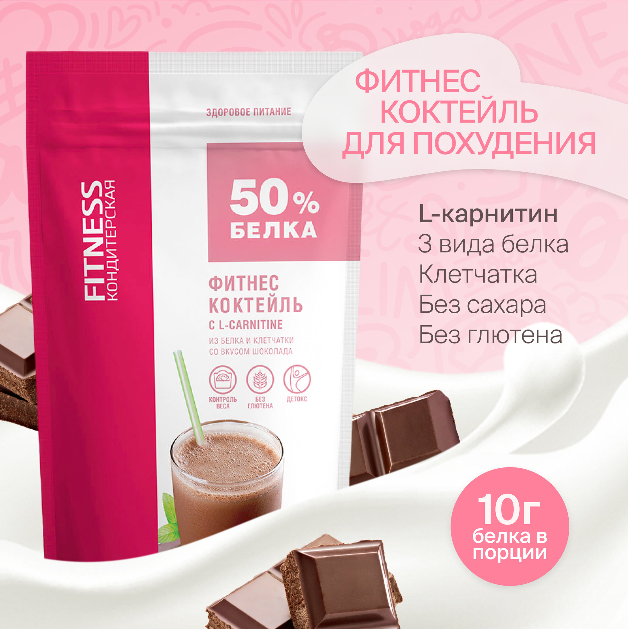 Протеиновый коктейль для похудения с Л-Карнитином Fitness Кондитерская : Шоколад. 140г