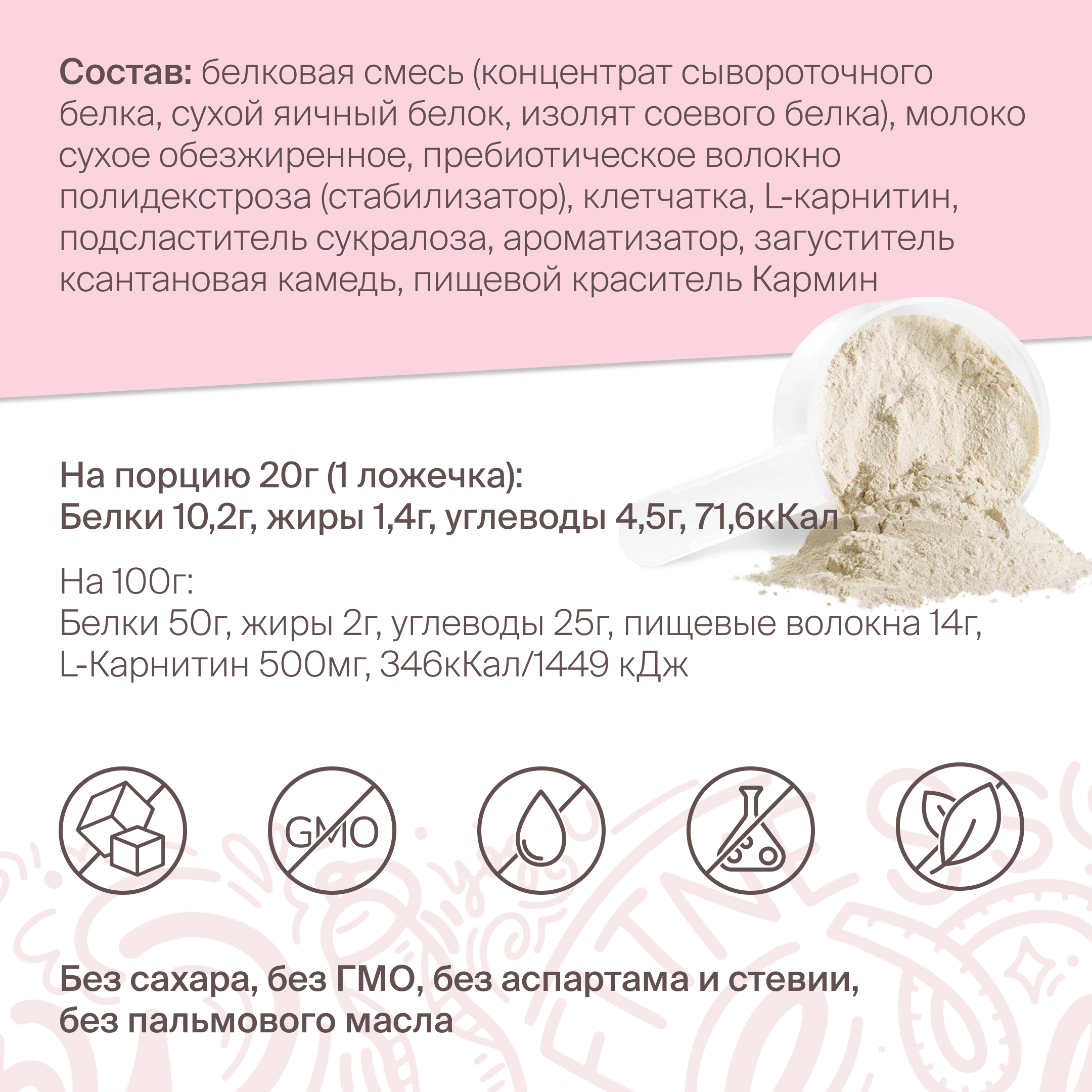 Протеиновый коктейль для похудения с Л-Карнитином Fitness Кондитерская : Клубника. 400г