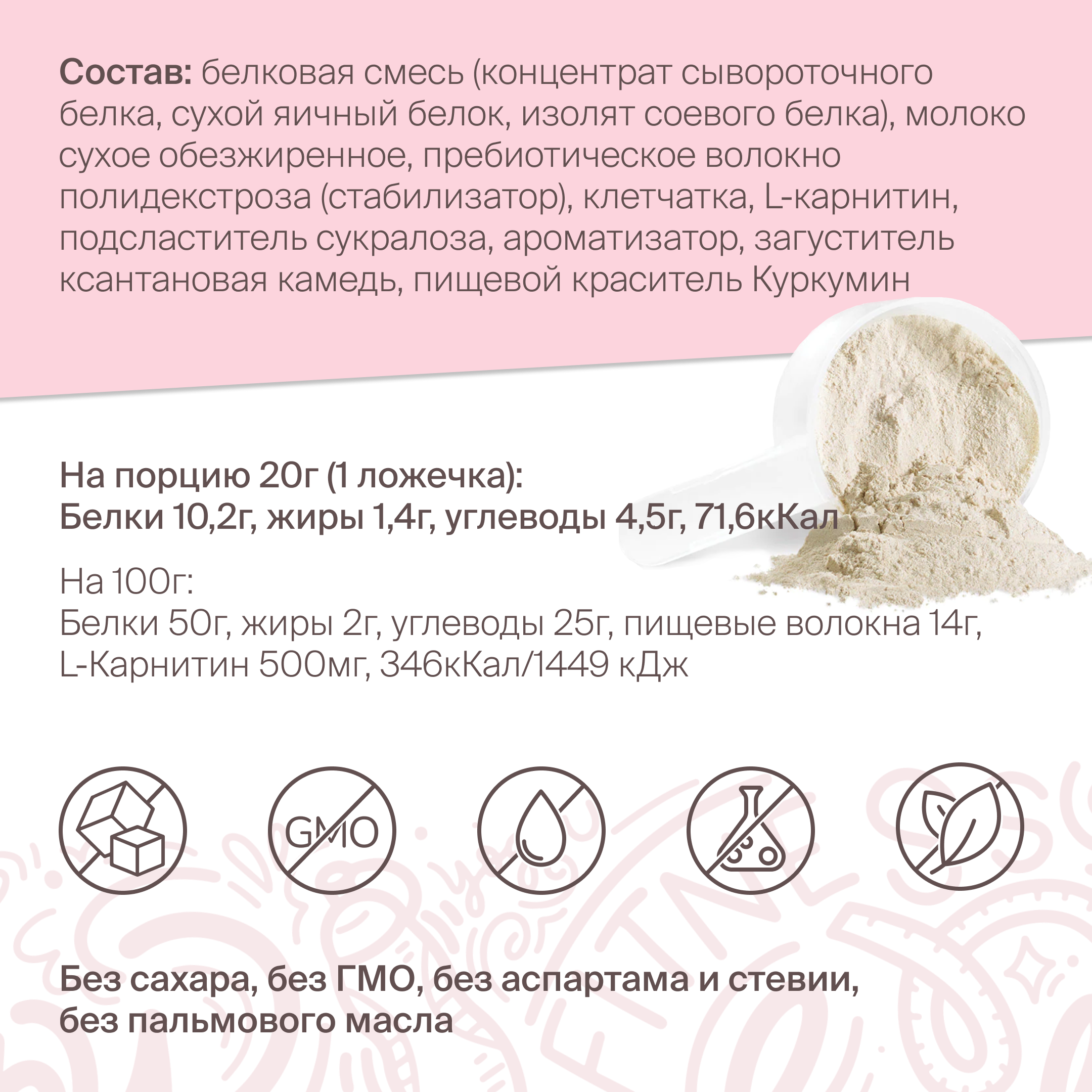 Протеиновый коктейль для похудения с Л-Карнитином Fitness Кондитерская : Клубника. 400г