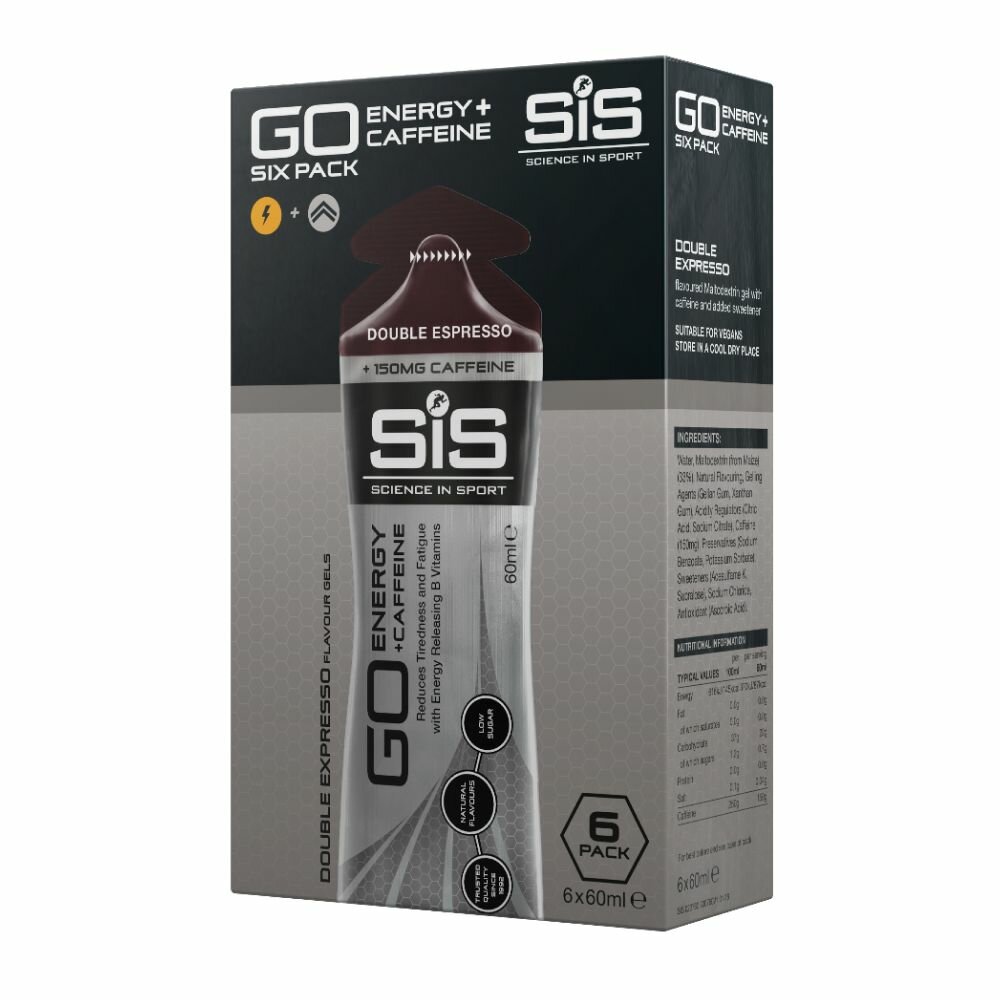 Купить Энергетический гель с кофеином 150мг SiS,GO ENERGY+CAFFEINE GEL 6шт по 60мл (Двойной эспрессо)