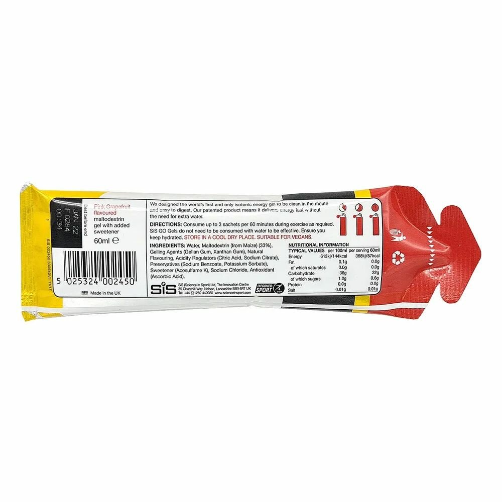 Гель изотонический энергетический SiS GO Isotonic Energy, 6шт по 60мл (грейпфрут)