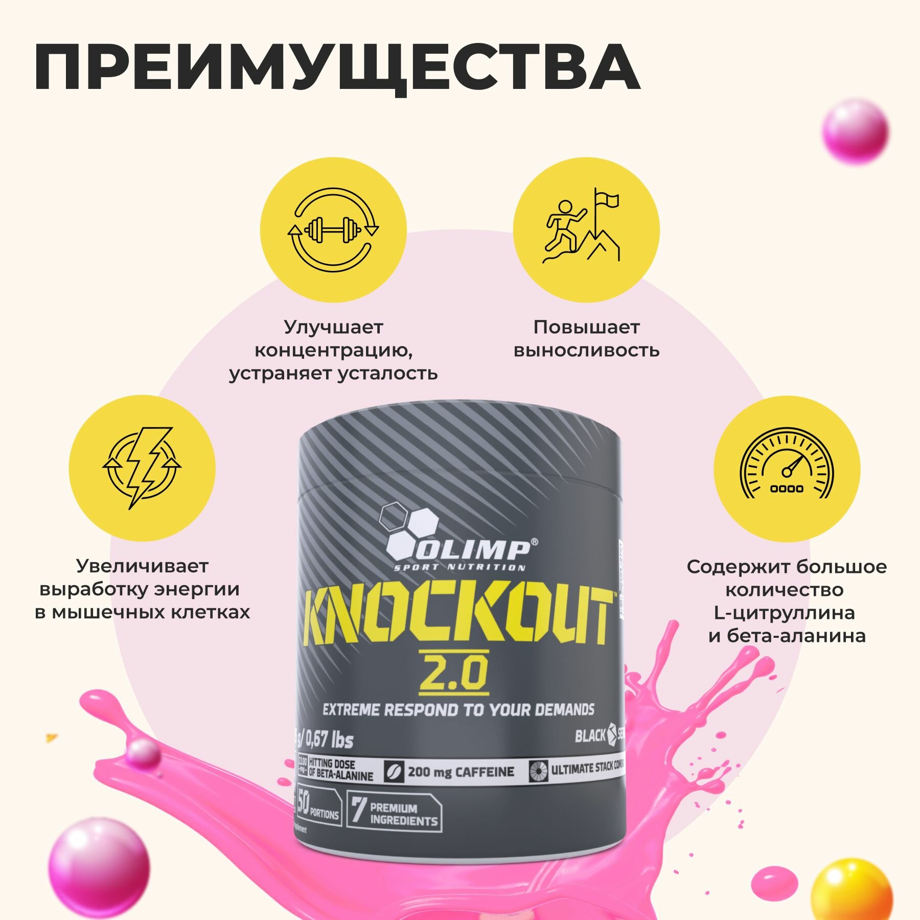 Предтренировочный комплекс Olimp Sport Nutrition Knockout 2.0 без кофеина, 50 порций 305 г, предтрен баббл гам, спортивная добавка