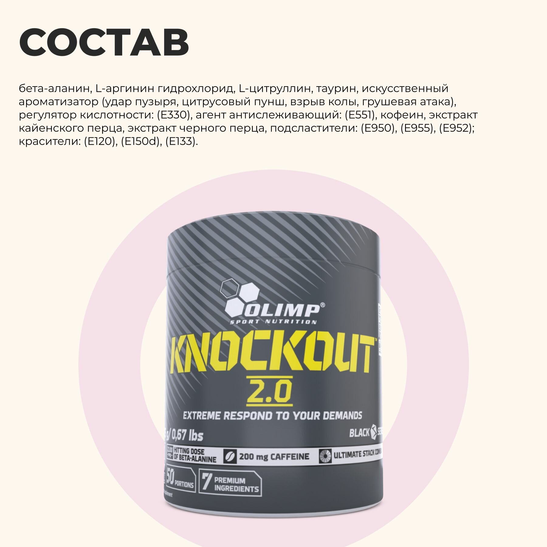 Предтренировочный комплекс с кофеином OLIMP KNOCKOUT 2.0, 305 г. Удар пузыря