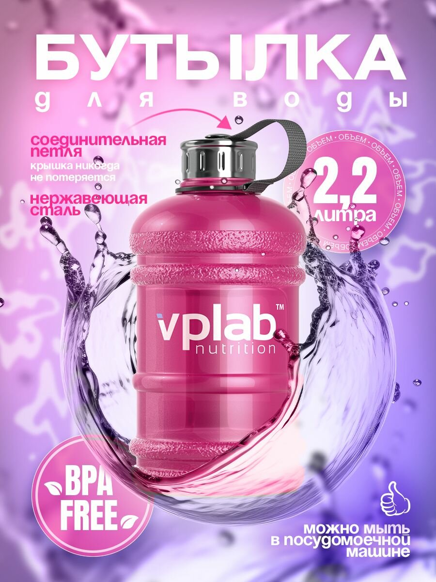 VPLab Nutrition Бутылка для воды 2,2 л с ручкой, цвет розовый, VPLab