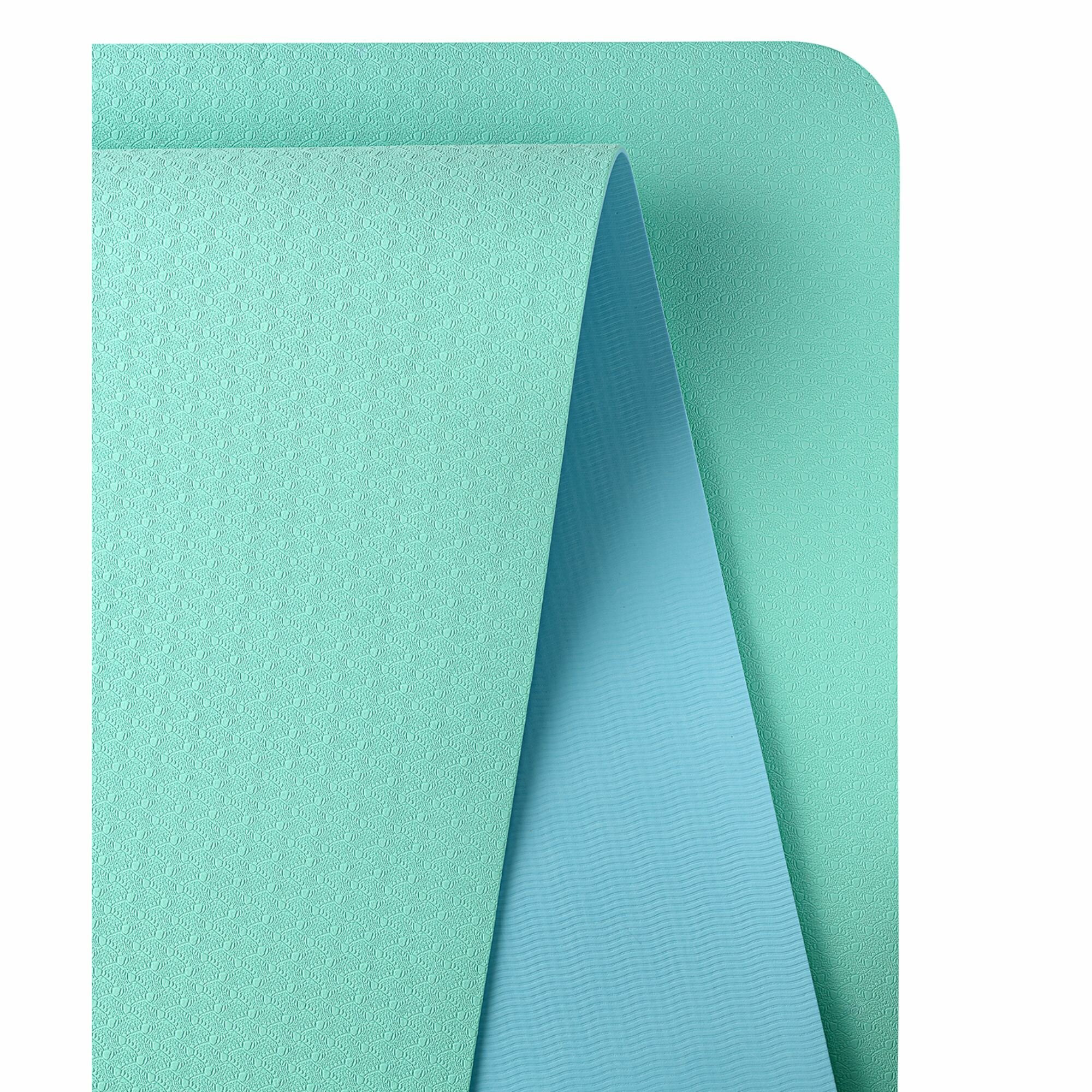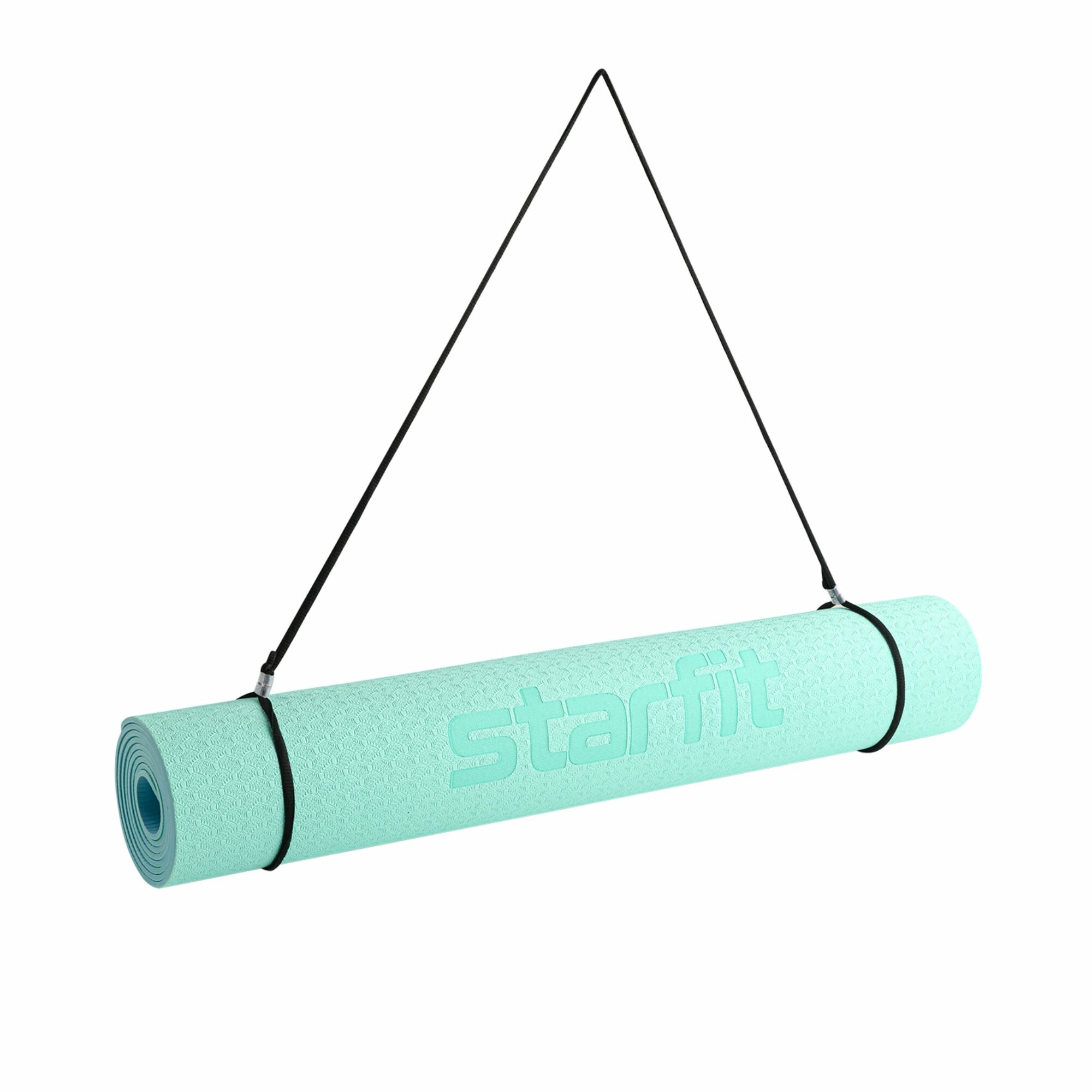 Коврик для йоги и фитнеса STARFIT FM-201, TPE, 183x61x0,4 см, мятный/синий с шнурком для переноски
