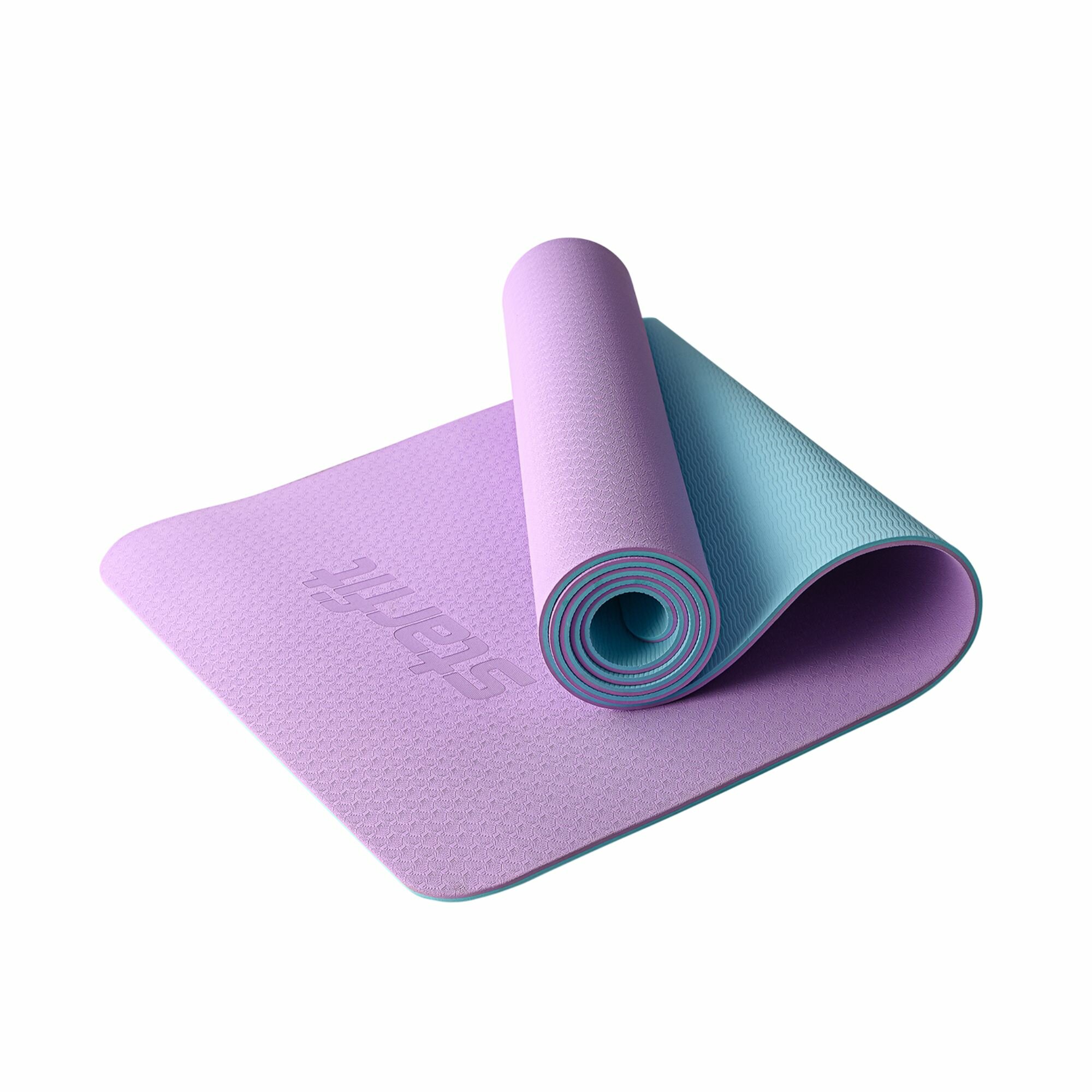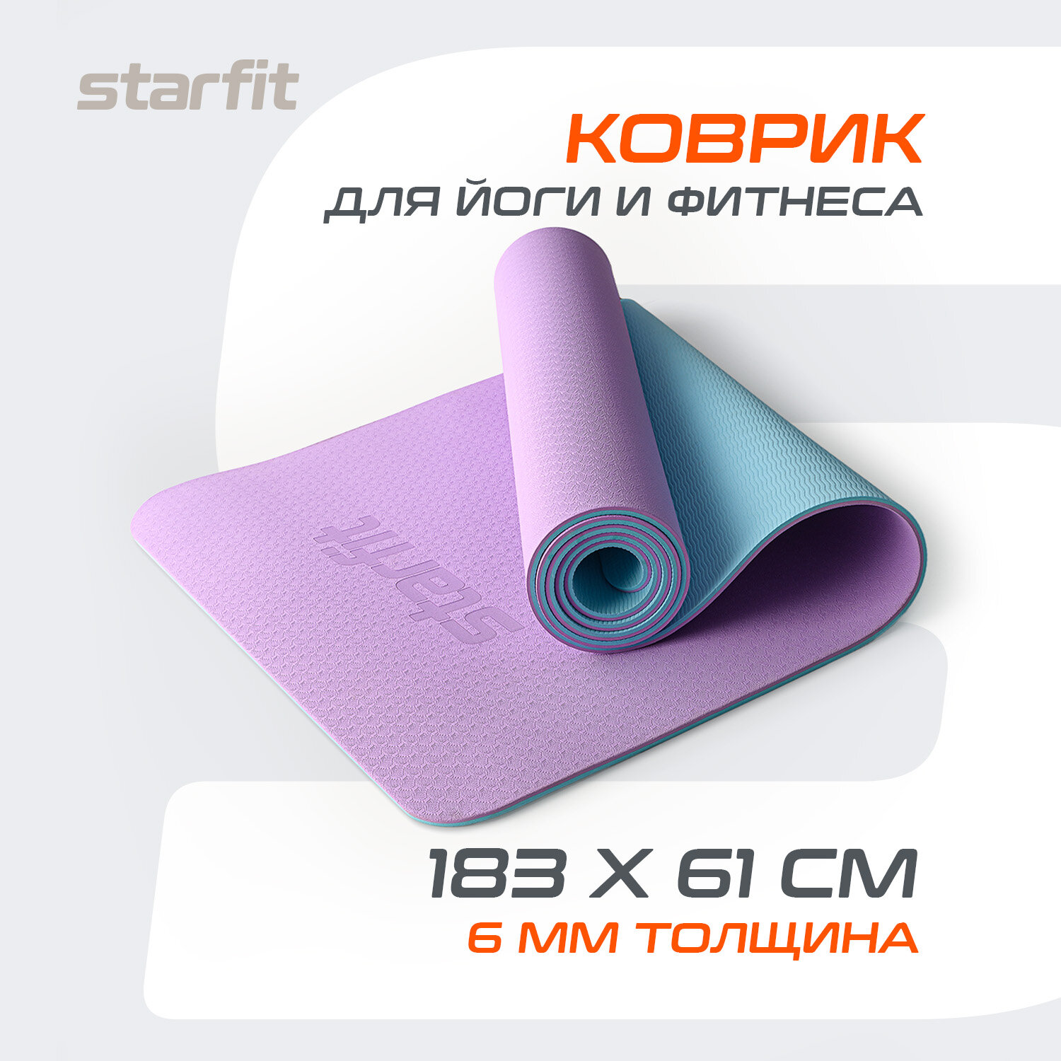 Коврик для йоги и фитнеса STARFIT FM-201, TPE, 183х61 см фиолетовый пастель/синий пастель 0.6 см
