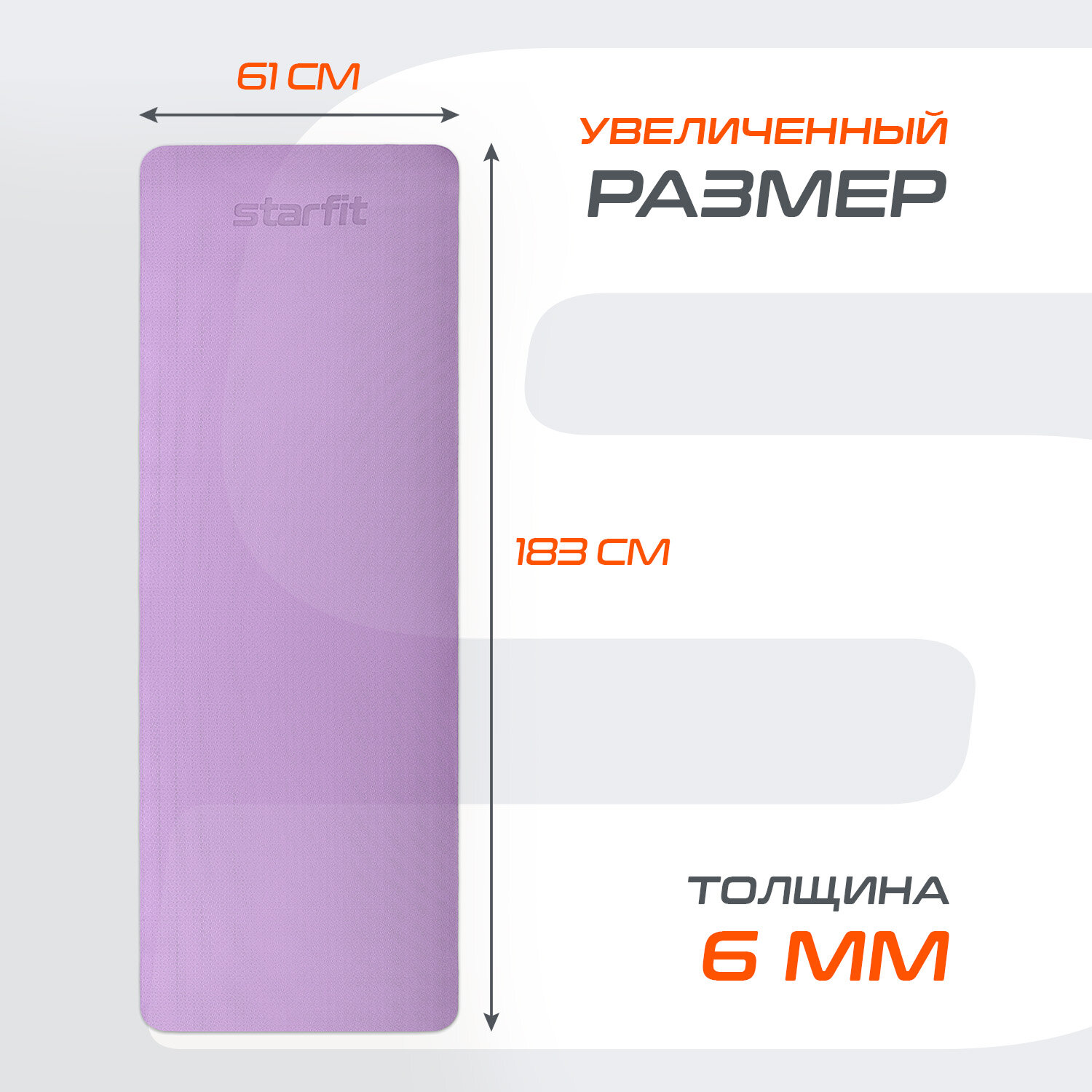 Коврик для йоги и фитнеса Starfit FM-201 Tpe, 0,6 см, 183x61 см, фиолетовый пастель/серый .