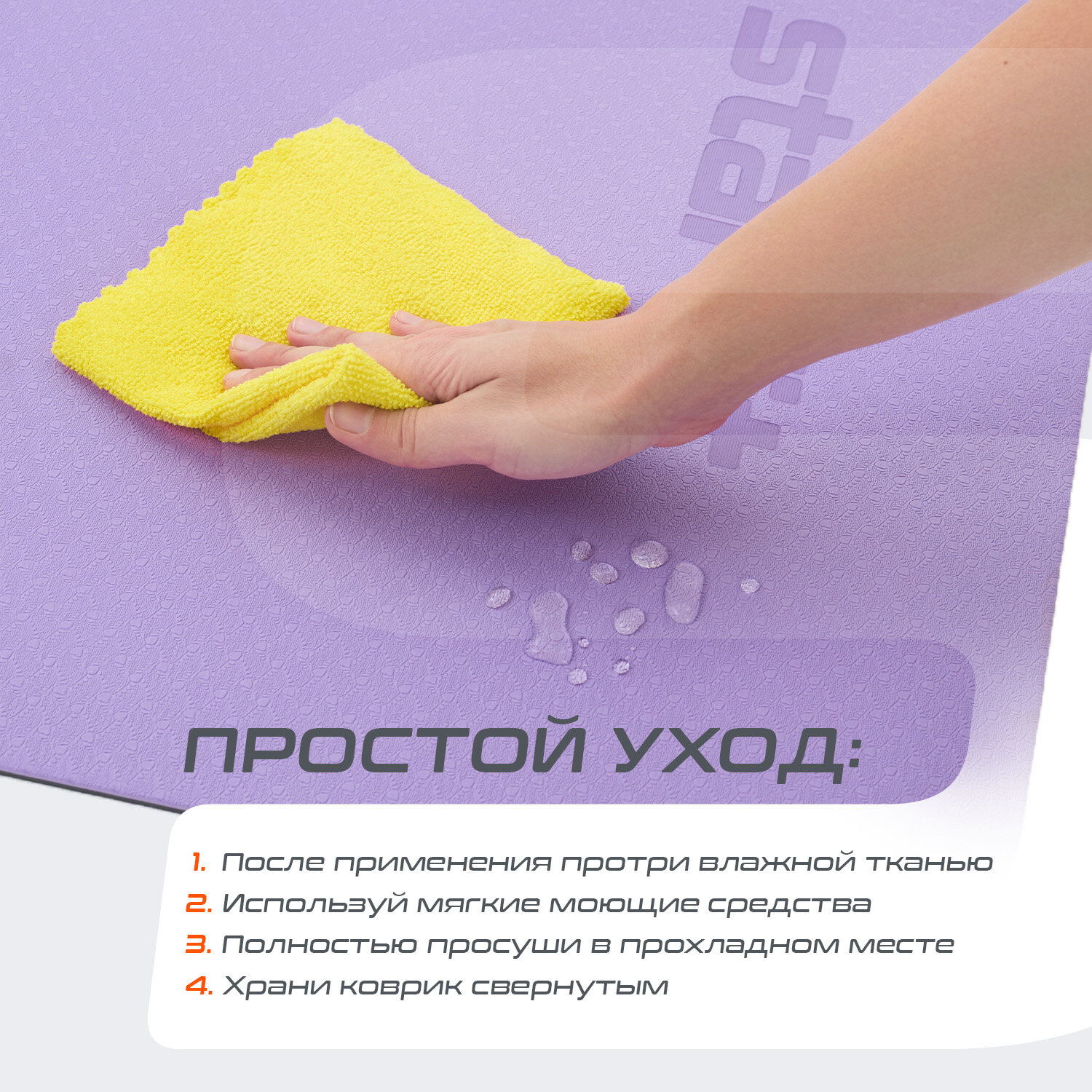 Коврик для йоги и фитнеса Starfit Fm-201, Tpe, 183x61x0,6 см, фиолетовый пастель/серый