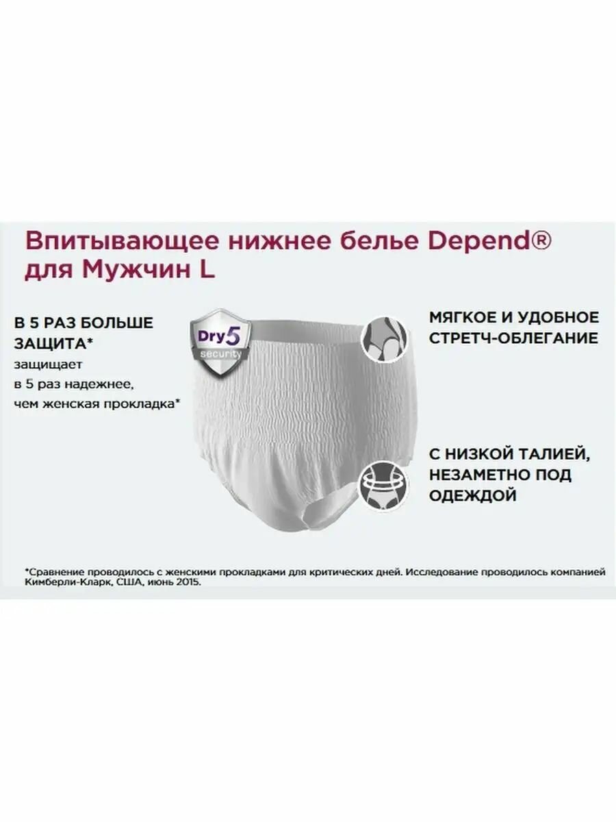 Впитывающее нижнее белье Depend/Депенд для мужчин L/XL (48-54) 9 шт.