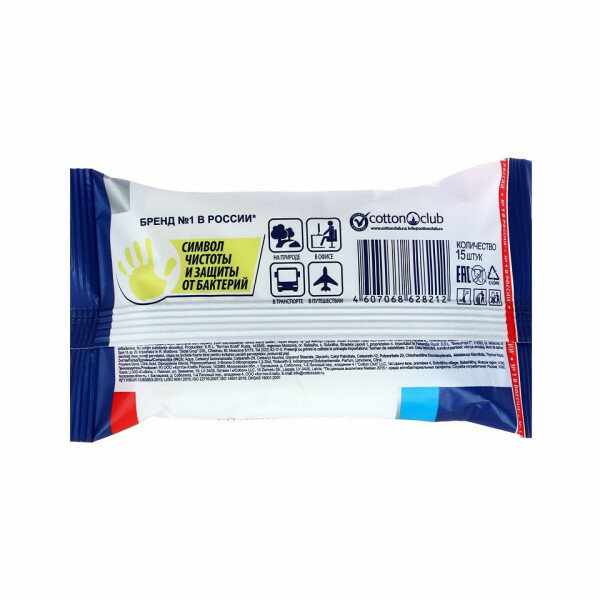 Cotton Club Влажные салфетки антибактериальные Aura Лимон стикер рука pocket-pack 15 шт