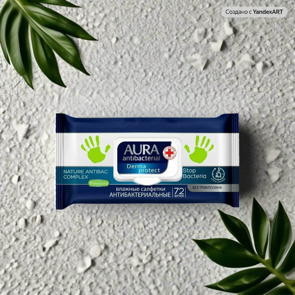 Влажные салфетки Aura Derma Protect, антибактериальные, 72 шт