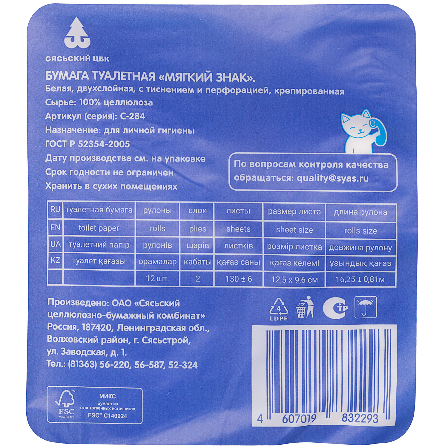 Туалетная бумага Мягкий Знак Comfort, 2 слоя, 12 рулонов