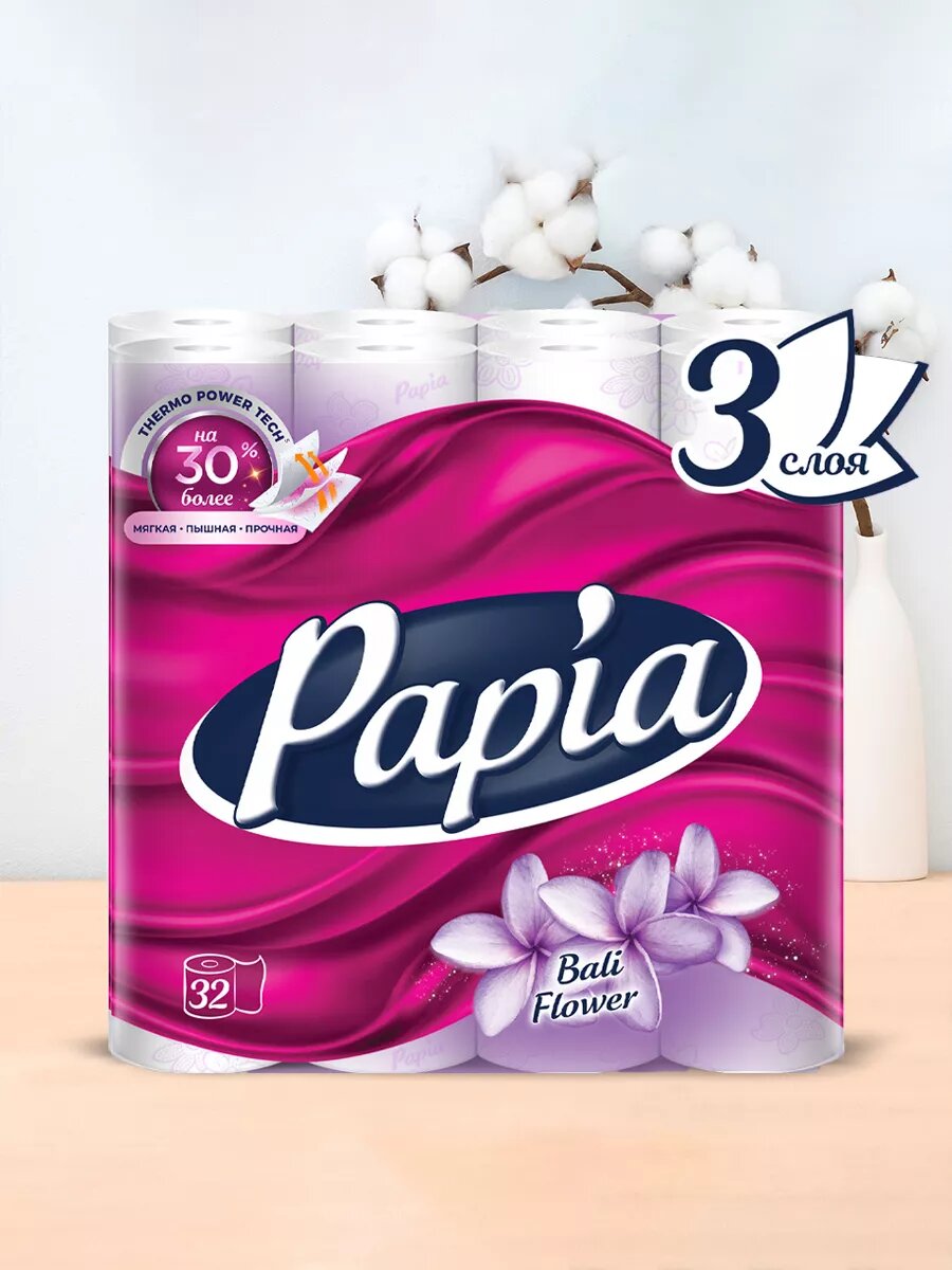 Купить Туалетная бумага Papia Балийский Цветок, 3 слоя, 32 рулона