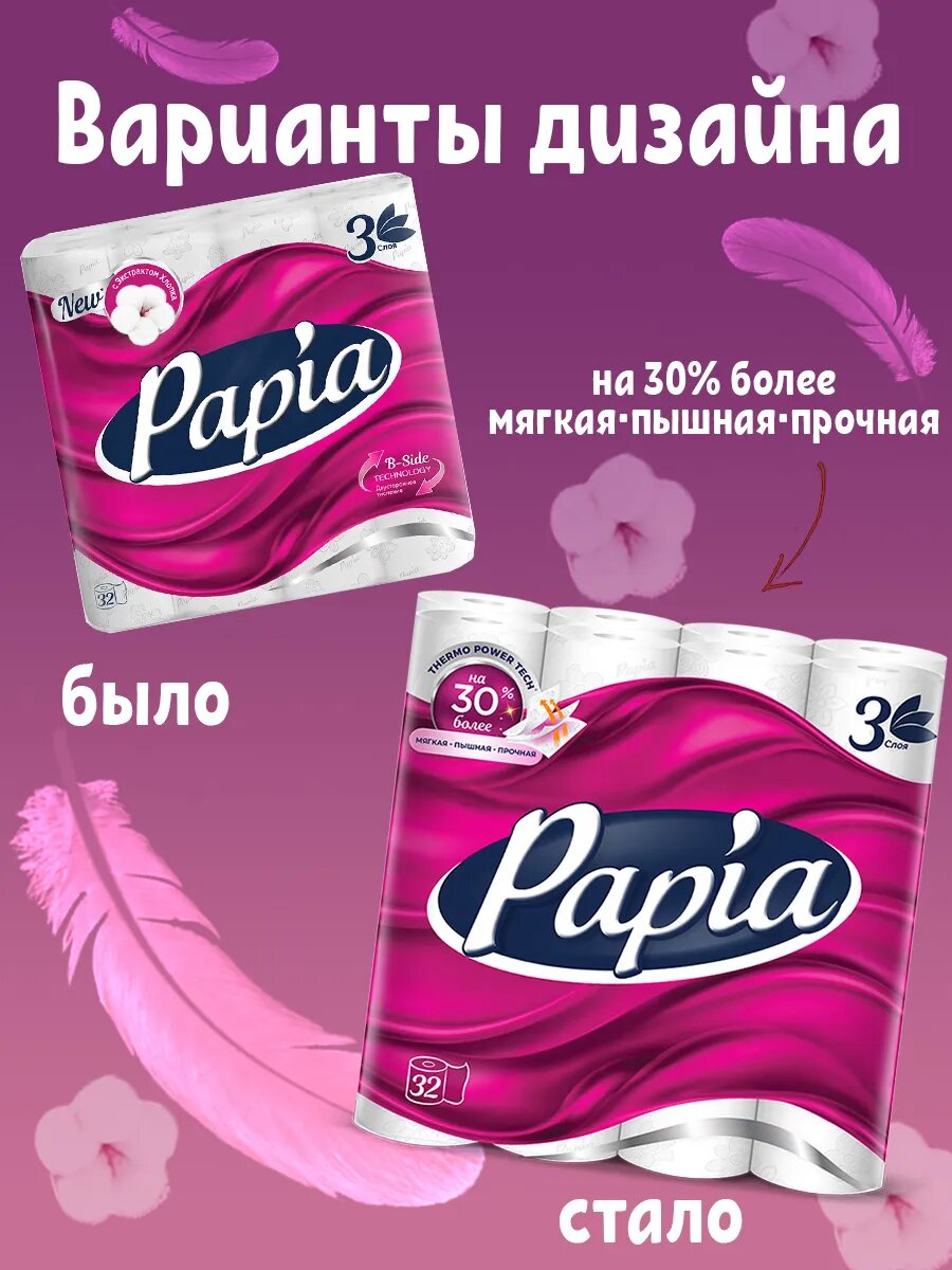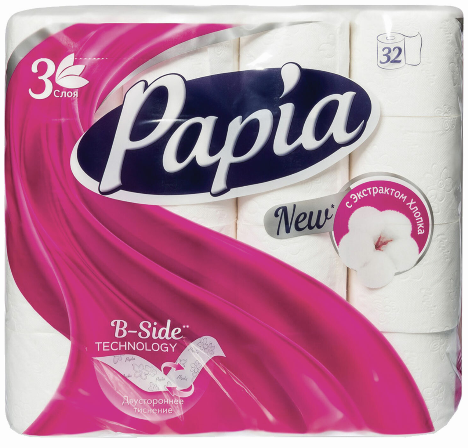 Papia Туалетная бумага 3-х слойная Белая, 32 рул в уп