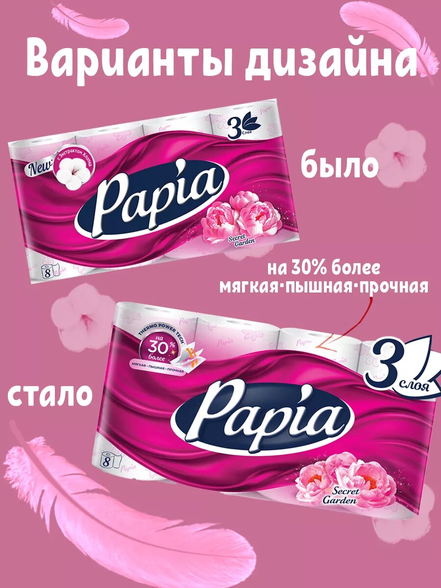 СохранитьТуалетная бумага Papia Secret Garden белая с цветочным ароматом, 3 слоя, 8 рулонов интересное: