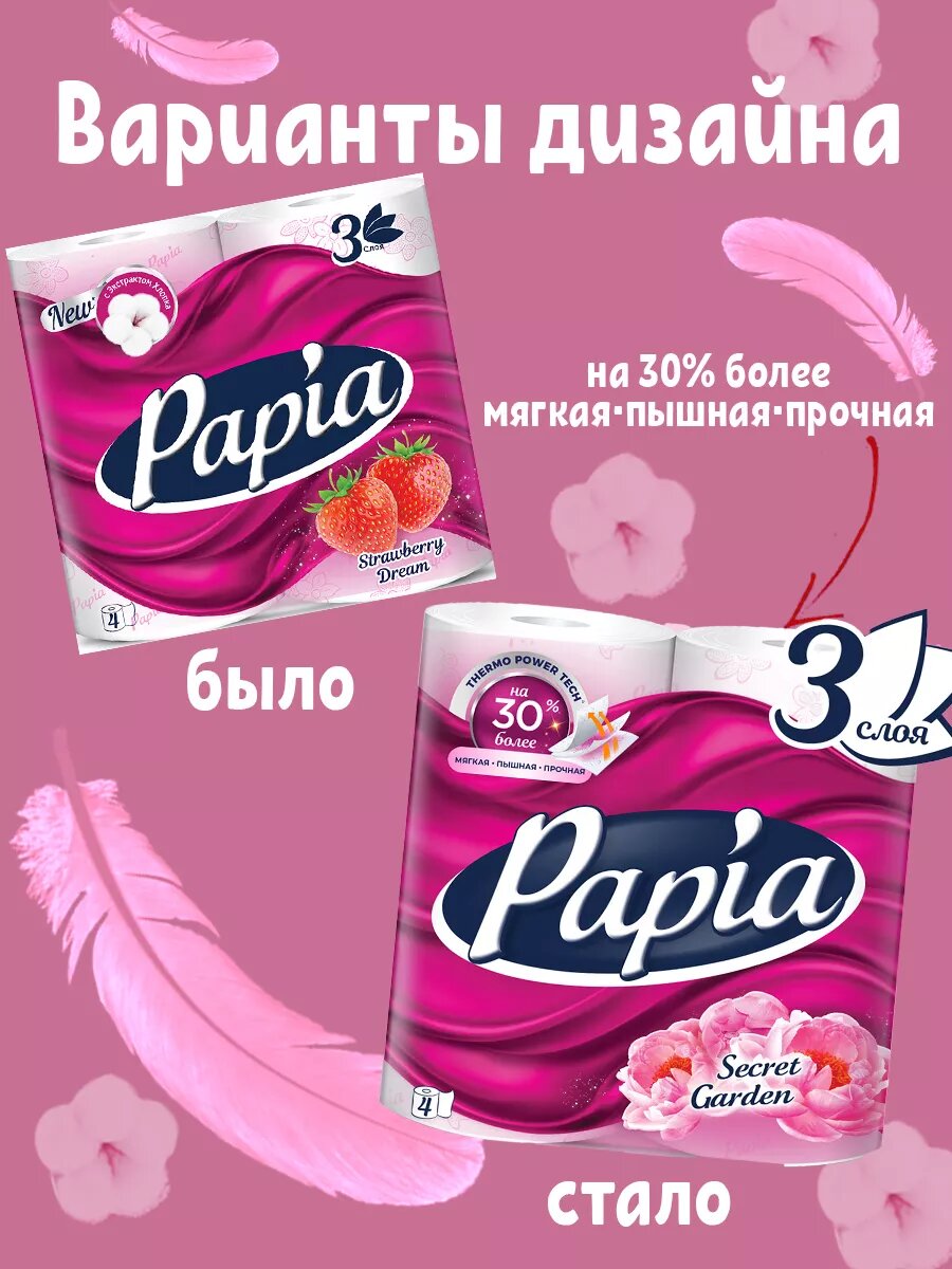 Papia Туалетная бумага Клубничная мечта 3-слойная, 8 рулонов