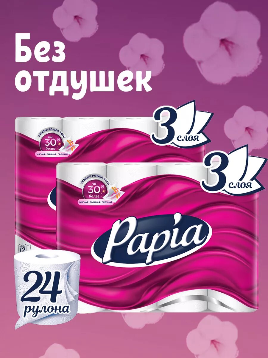 Туалетная бумага Papia без запаха 3сл/12рул набор 2шт