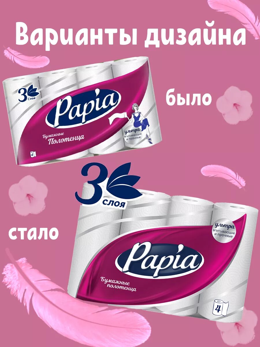 Купить Papia Полотенца бумажные трёхслойные 4 рулона