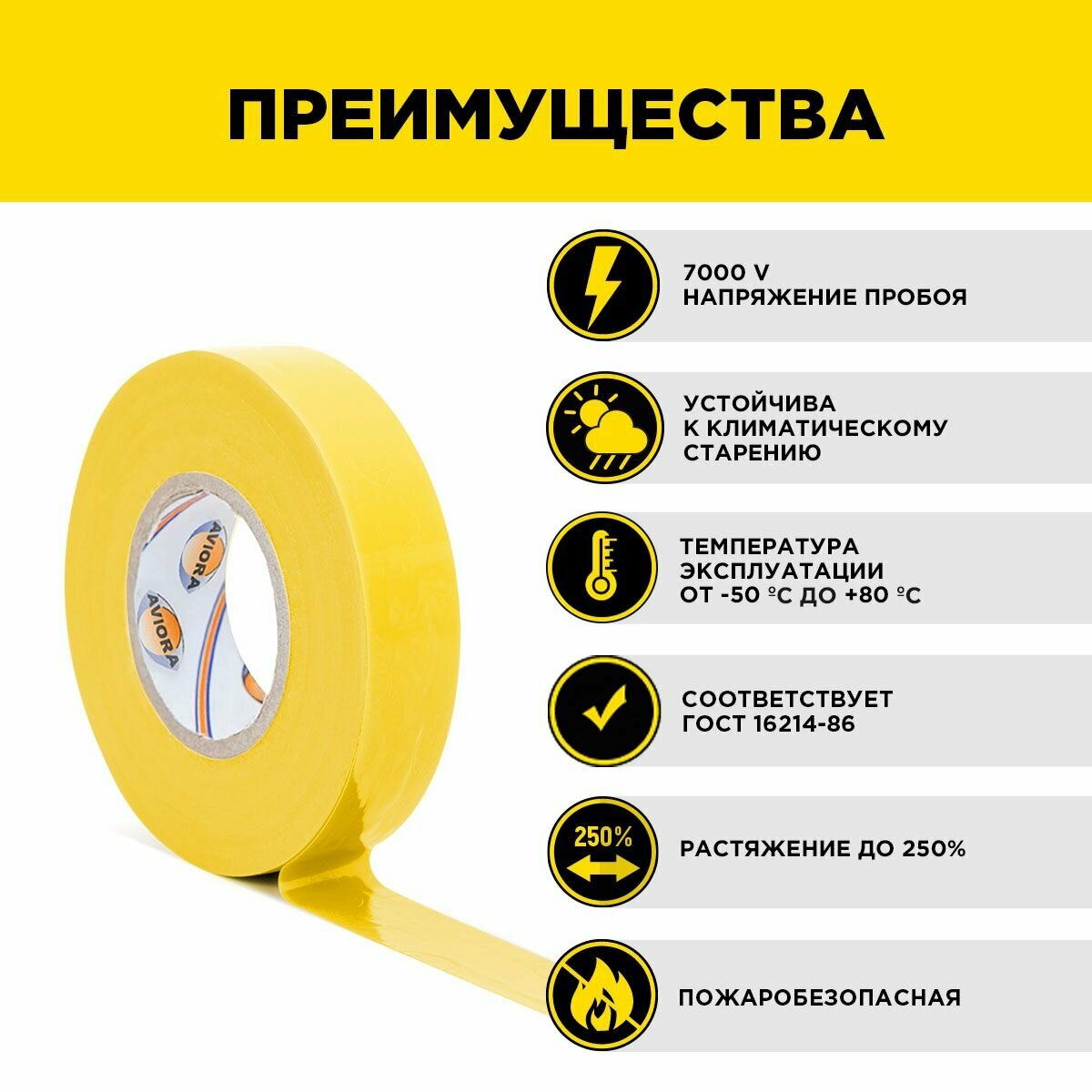 (20 шт.) Изолента ПВХ желтая 19мм 20м Aviora профессиональная