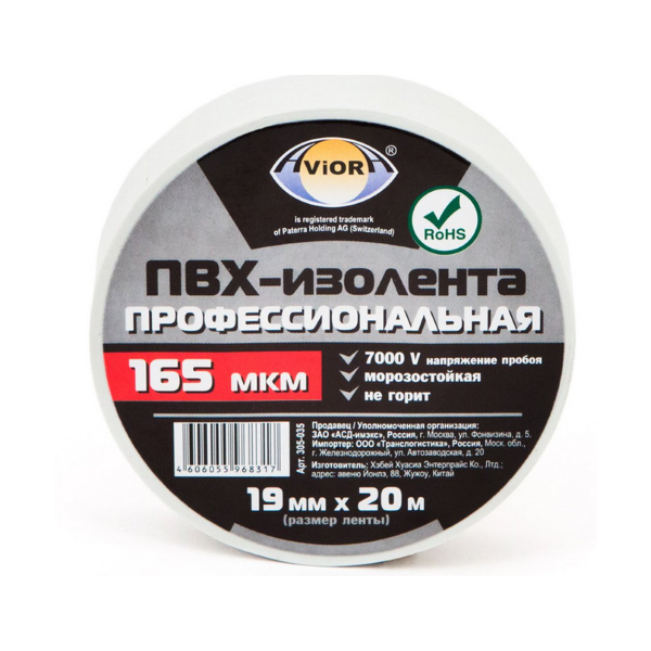 Изолента профессиональная ПВХ 19мм * 20м "AVIORA" (белая)