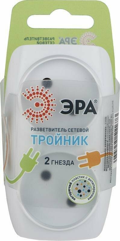Тройник ЭРА SP-2-W, цвет: белый, 2 гнезда