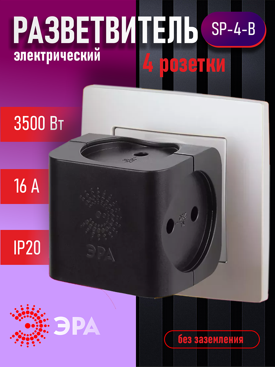 Ниже Вы можете прочитать отзывы на Тройник SP-4-B ЭРА / Тройник розетка электрический / Разветвитель электрический без заземления, 4 розетки, 16А, черный, ознакомится с подробными характеристиками, посмотреть интересные обзоры и фотографии на Тройник SP-4-B ЭРА / Тройник розетка электрический / Разветвитель электрический без заземления, 4 розетки, 16А, черный.