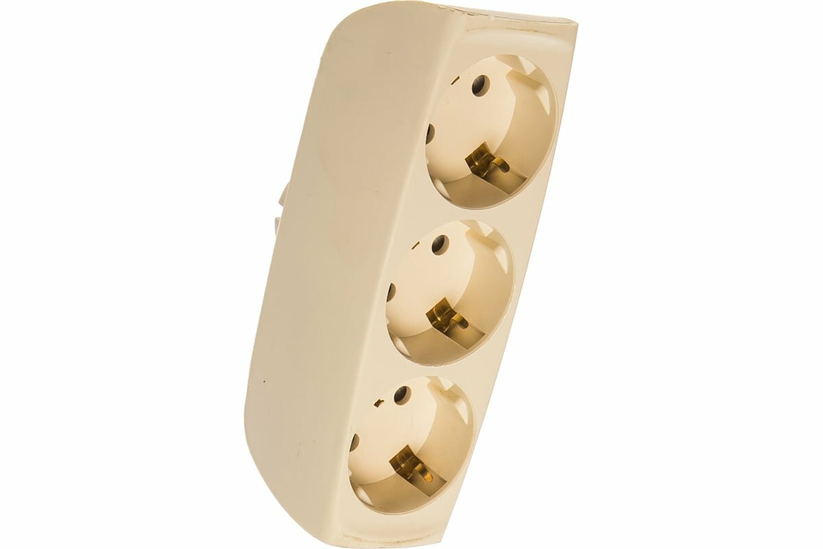 ЭРА разветвитель (тройник) 3 роз. 16А сл. кость, земля, шторки (линейный) SP-3e-I (арт. 410807)