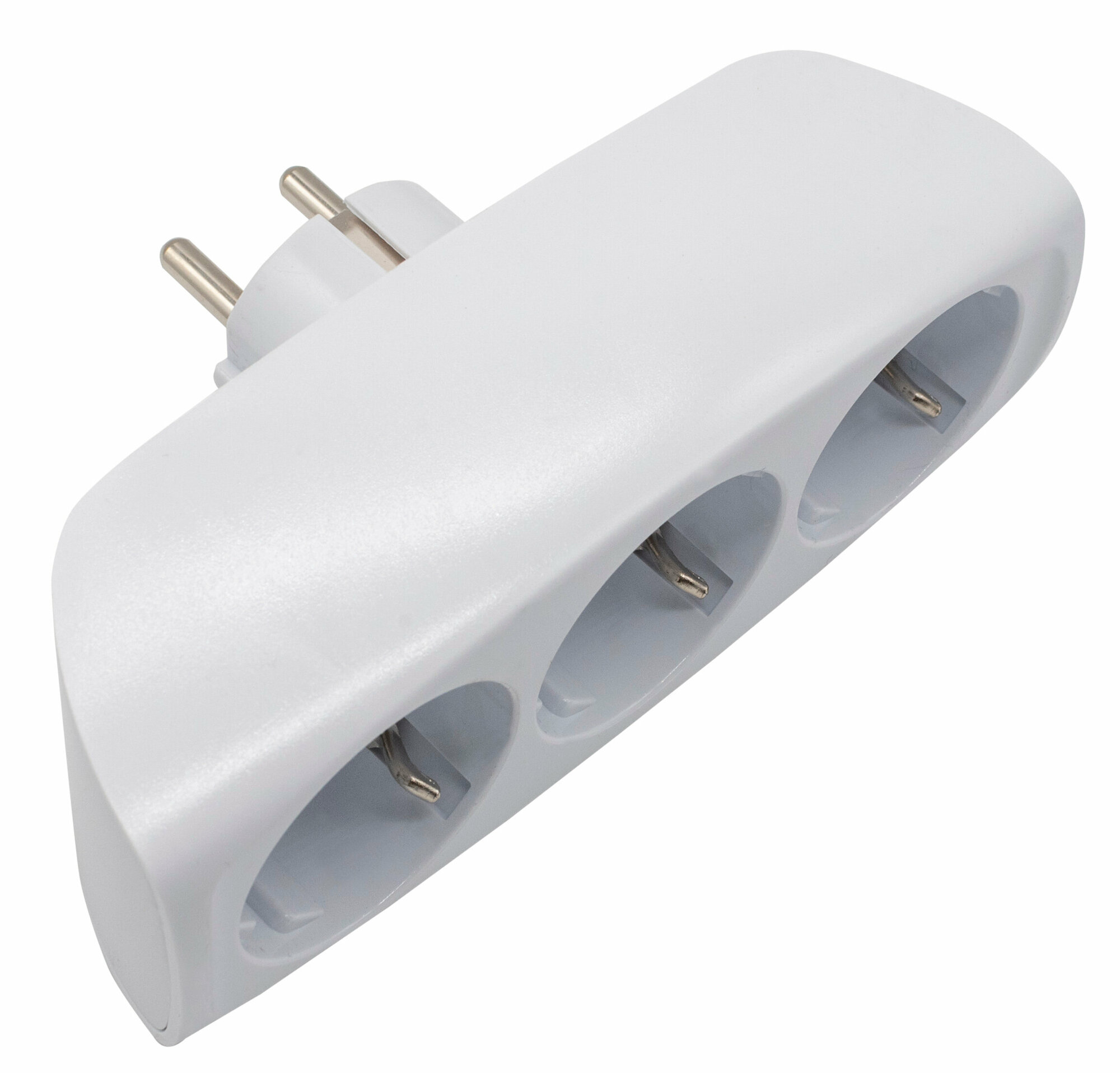 Тройник для розетки электрический с заземлением 16А, белый