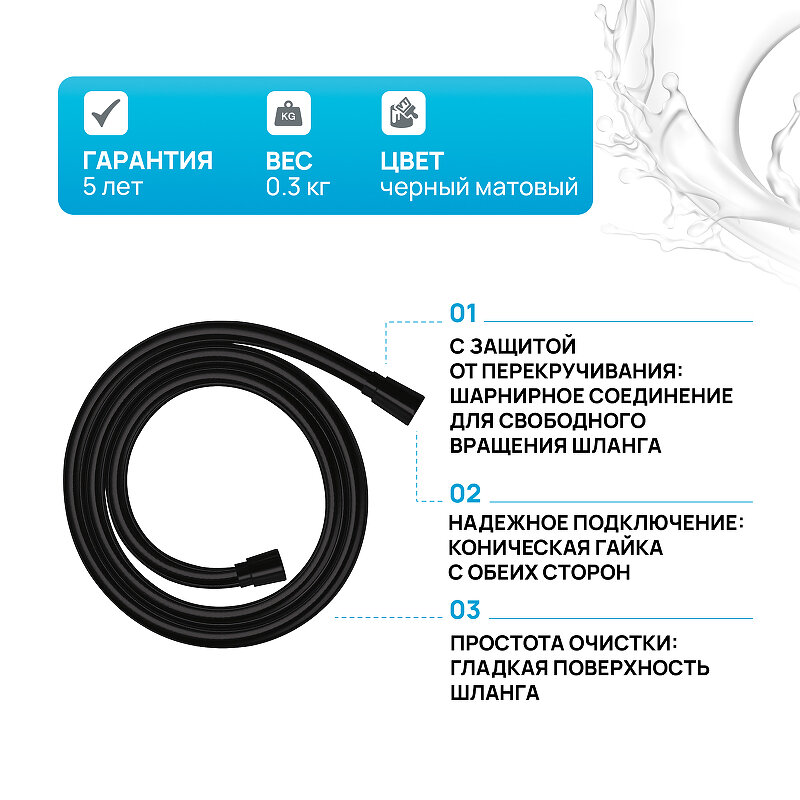 Душевой шланг hansgrohe Isiflex 125 см с защитой от перекручивания 28272670, матовый черный