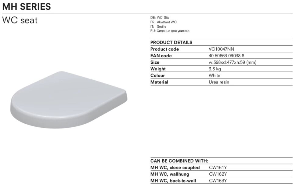 Toto MH Сиденье для унитазов 39,8x47,7xh5,9 см, цвет белый VC10047NN