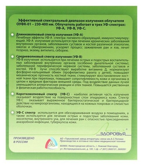 СохранитьОблучатель ОУФК-01 Стандарт ультрафиолетовый кварцевый (2 тубуса) 1 шт интересное: